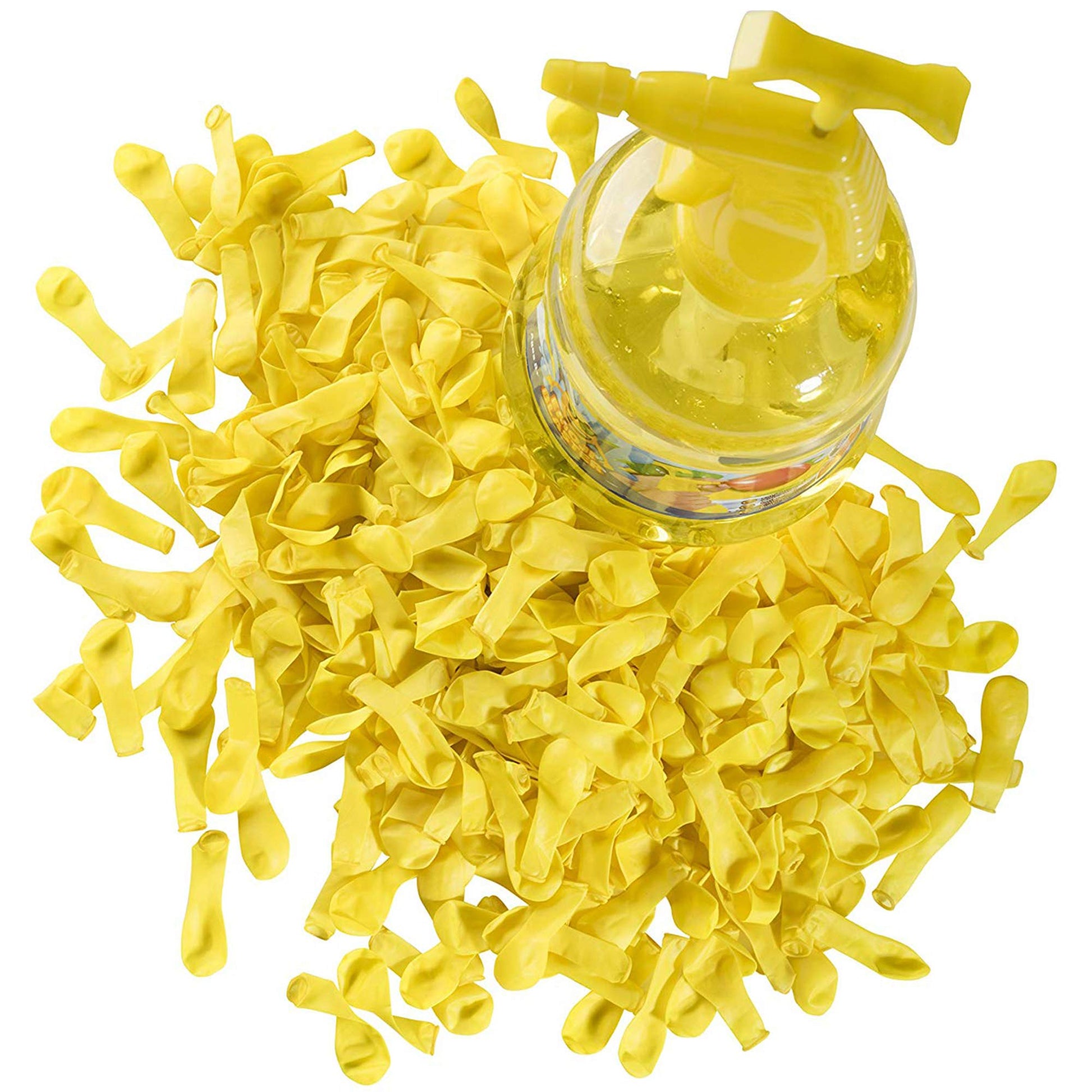 Looking for summer fun for kids? Toyrifik Water Balloon Pump is perfect for any child or adult looking for some summer action. Water balloons are so much fun on hot summer days. They cool you down and can be played with in a bunch of ways. You can play water balloon tag, water balloon toss, water balloon basketball, water balloon through a ring, water balloon dodge ball etc. The water balloon pump is filled with 500 yellow water balloons which can easily be filled with just a few simple pumps and a pull on the trigger. A plunger pump pressurizes the bottle then just press the trigger to release the contents. Its just 5 simple steps, fill the container with water, attach a balloon to the nozzle, pump, fill balloon, tie and you are good to go. This pump is perfect for filling up water balloons on a hot day, it moves air or water through the nozzle to inflate and with a simple twist turns to a mister for spraying water. Fill your water balloons fast, even while hiding to surprise someone with that water splash. This portable water balloon pump holds up to 40 ounces and allows you to be on the move, while others are lined up at the faucet. The balloons are just the right size for throwing and bursting upon contact. This pump can also pump air or work as a mister to keep you refreshed in the heat.